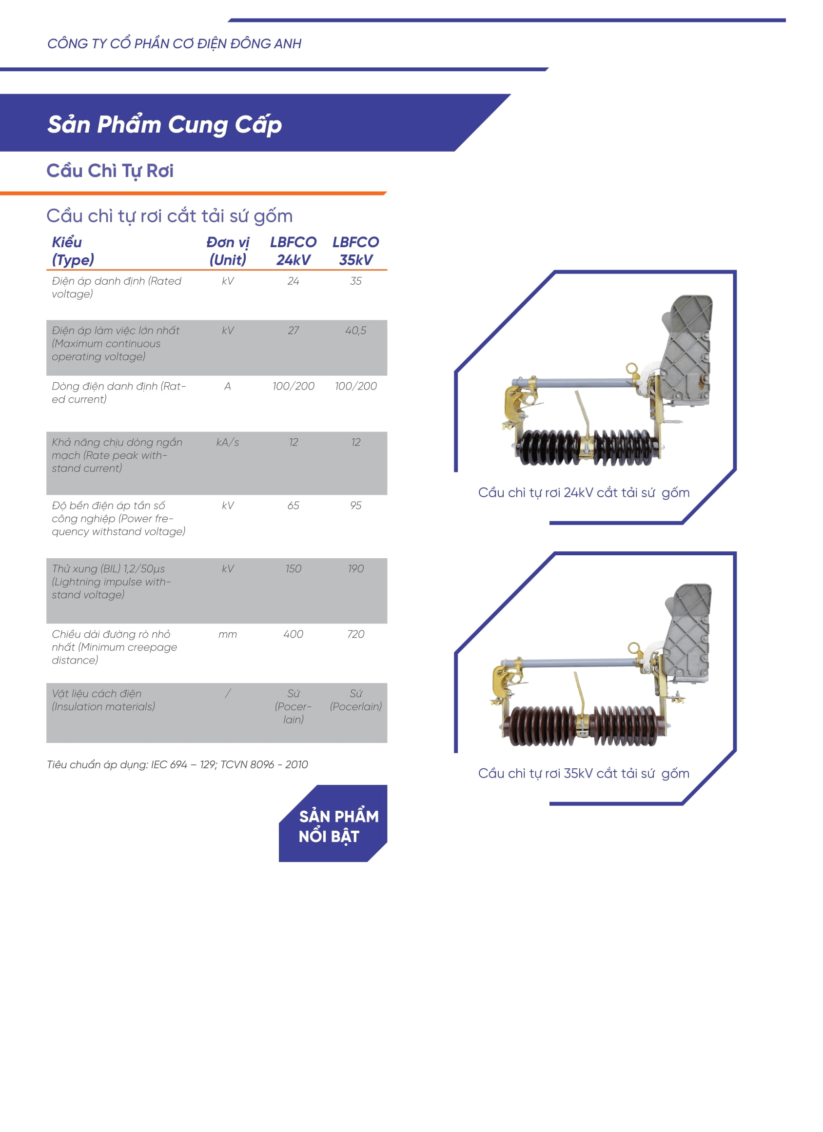 - Cầu chì tự rơi cắt có tải ngoài trời được thiết kế phù hợp với hệ thống lưới điện trung thế từ 12kV đến 40.5kV.