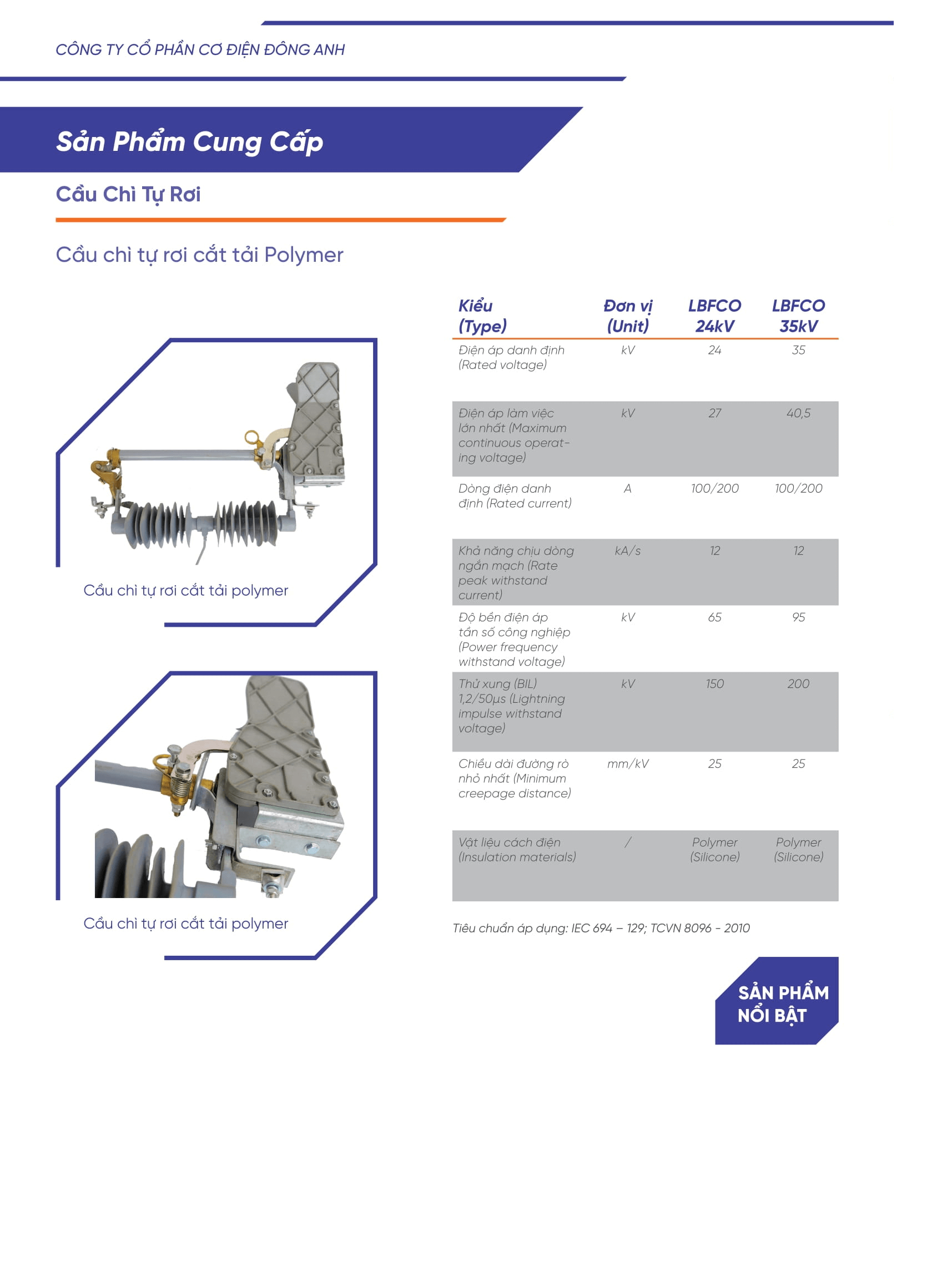 - Cầu chì tự rơi cắt có tải ngoài trời được thiết kế phù hợp với hệ thống lưới điện trung thế từ 12kV đến 40.5kV.
