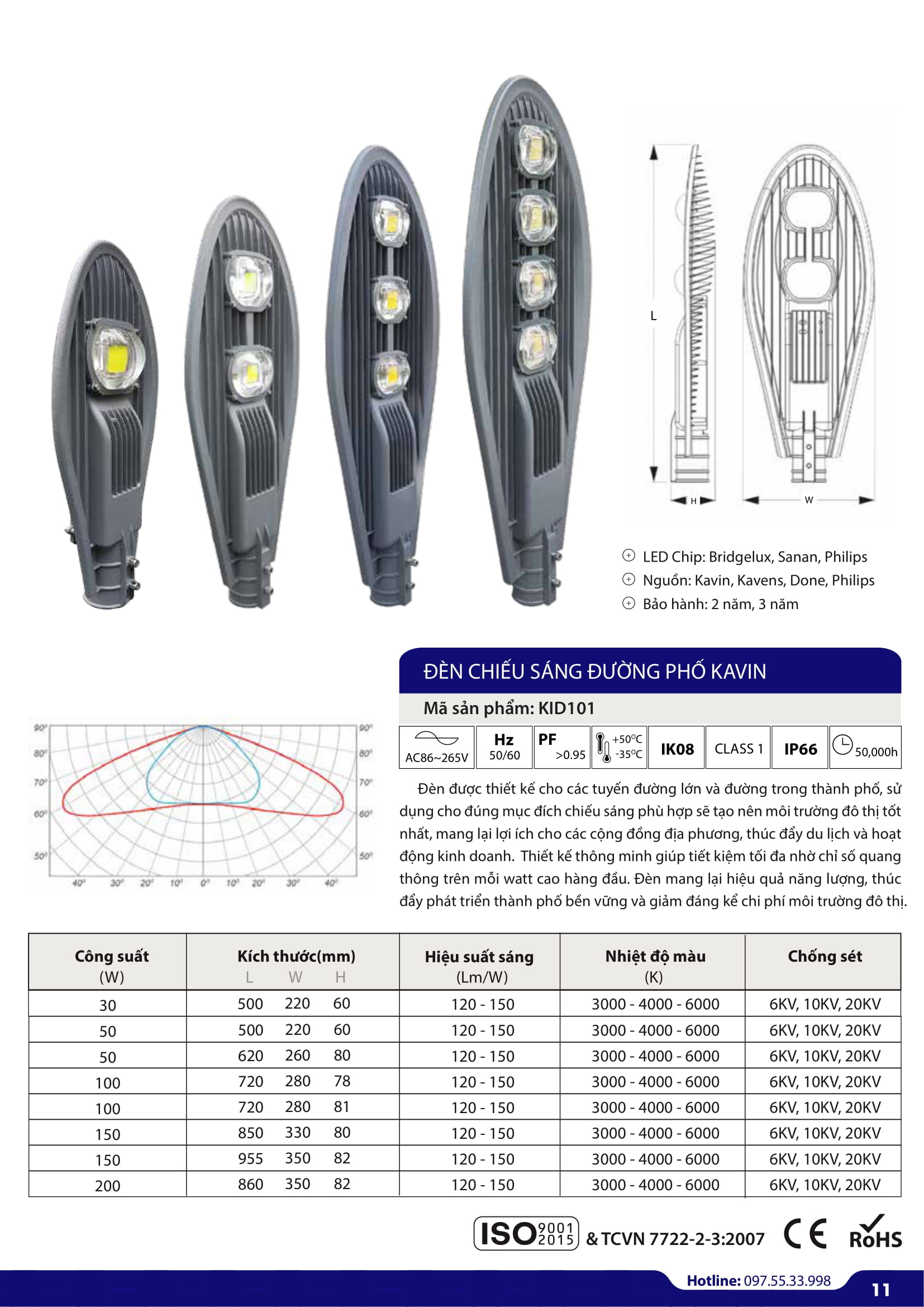 Đèn đường Kavens với thiết kế nhôm đúc, mẫu mã đẹp. Đèn led KID101 sử dụng Chíp Led siêu sáng tích hợp công suất cao. Chíp led được bảo vệ bởi thấu kính hội tụ dày 5mm cho khả năng phát sáng tốt nhất. Nguồn LED chất lượng cho chất lượng ánh sáng ổn định và tuổi thọ đèn lâu dài. Dự án đèn đường led trở nên hiệu quả hơn bao giờ hết.