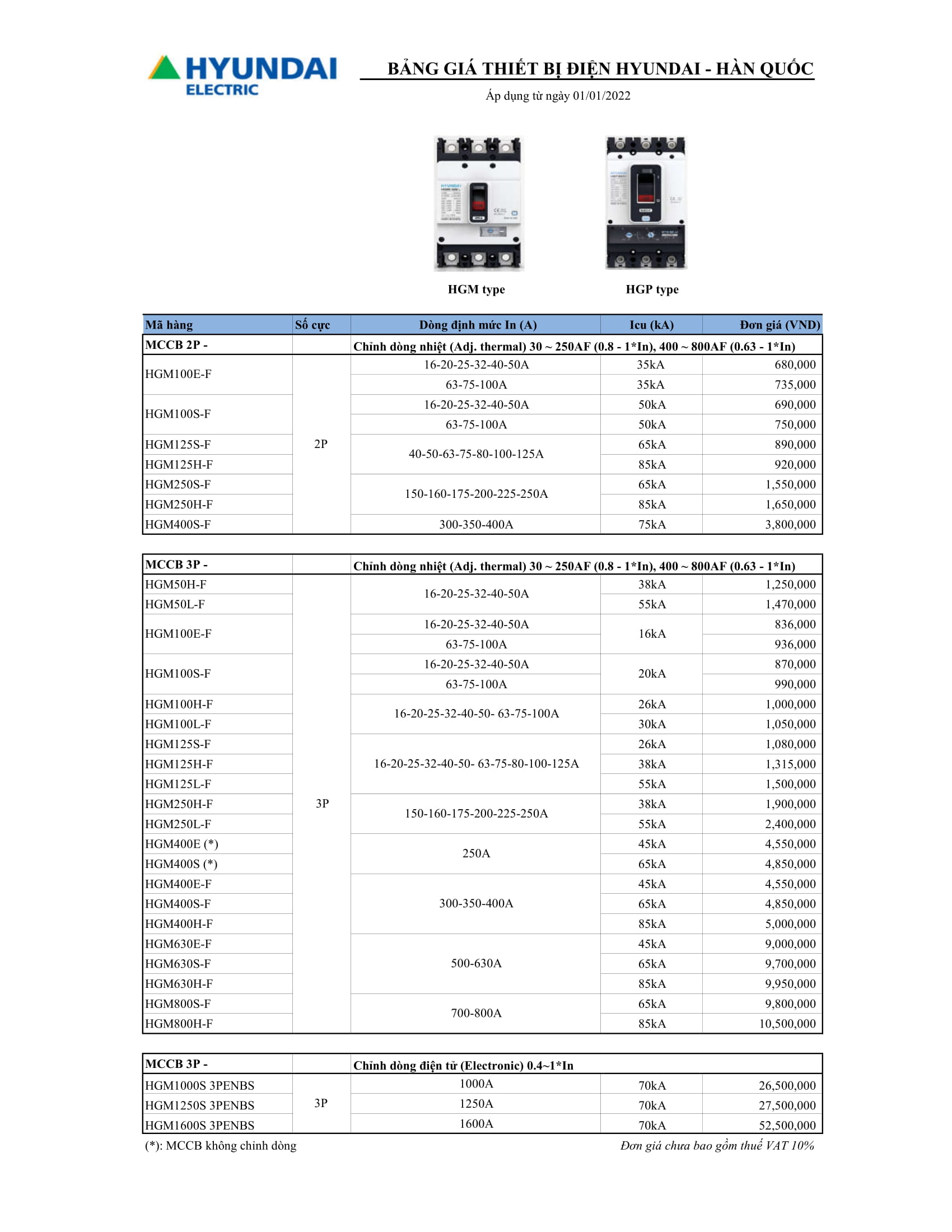 HGM400E- F 3P Aptomat Hyundai MCCB 3P 45kA
